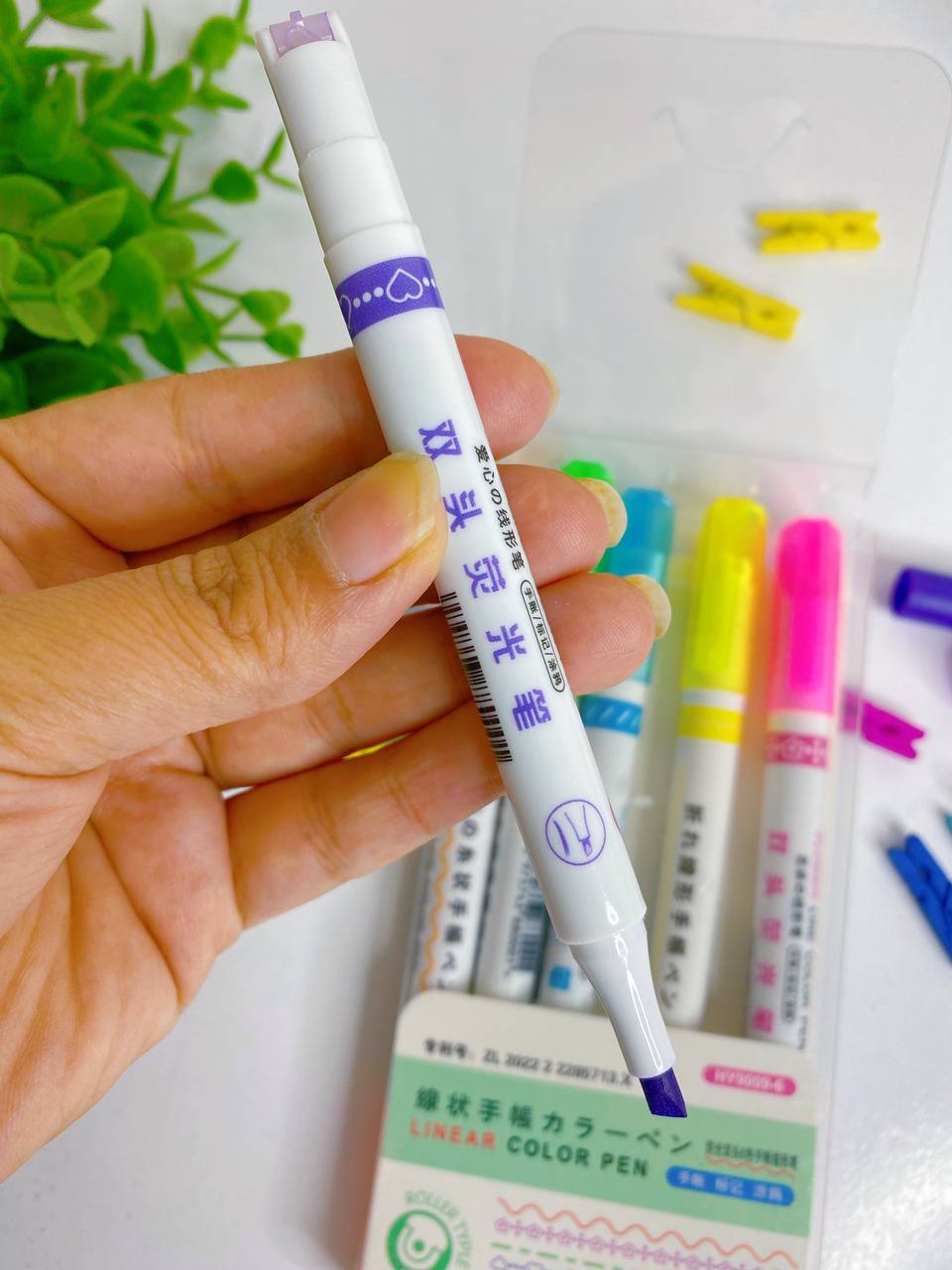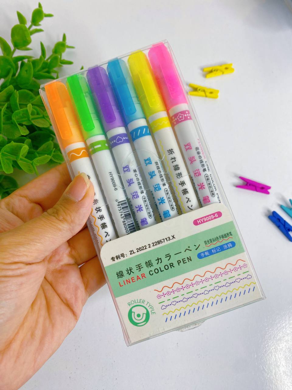 هایلایتر دو سر: یک سر هایلایت میکنه..🤩 یک سر حاشیه های قشنگ میکشه...🌸🍓 پک شش عددی با شش رنگ قشنگ و. شش طرح حاشیه جذاب🌈 کیفیت عالی و بدون خشکی..☘️🌸