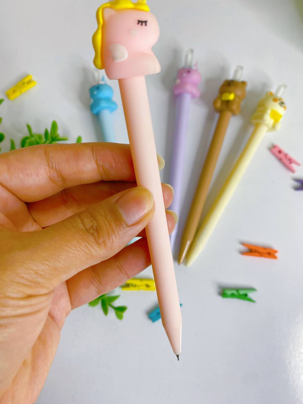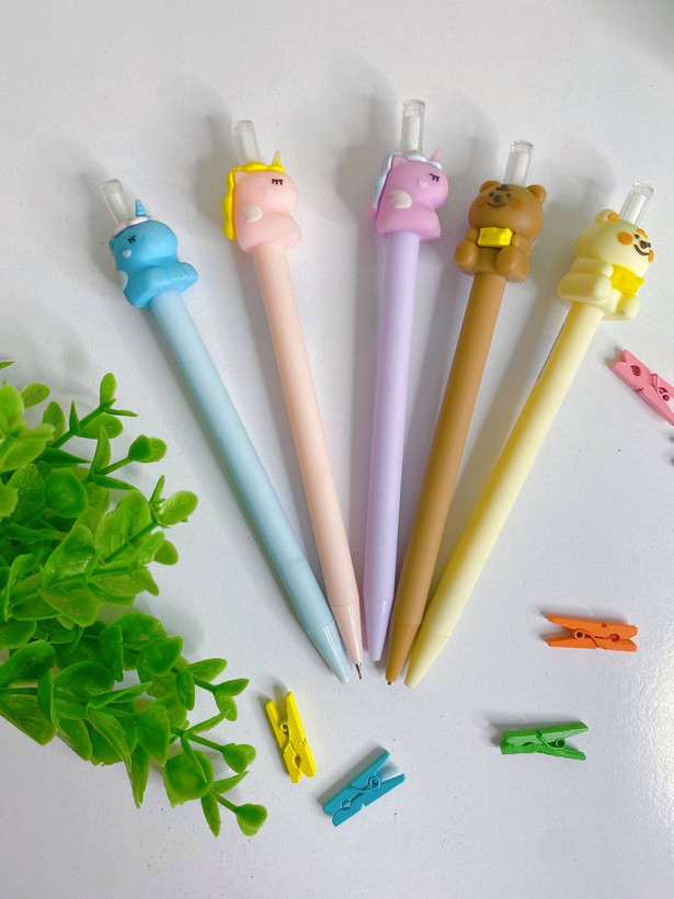 توضیحات: اتود پاستیلی با عروسک سیلیکونی 🌺کیفیت عالی🥰طرح یونیکورن و خرس🌺نوک ۰/۷