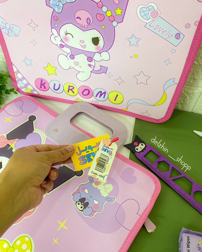 کیف طلقی دسته دار.. طرح کرومی.. دورنگ صورتی و بنفش جادار و سبک مناسب کلاس های بیرون مدرسه.