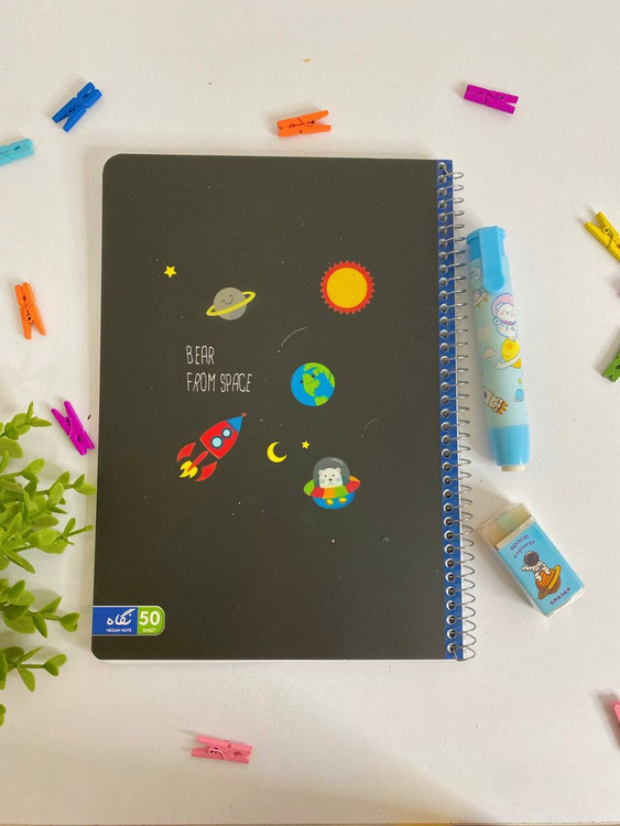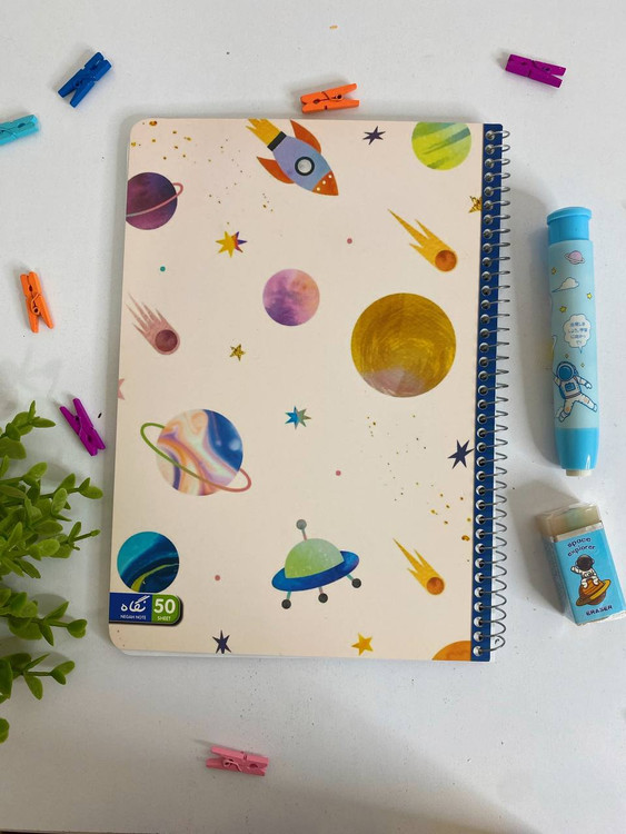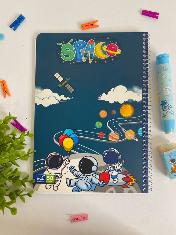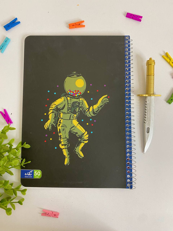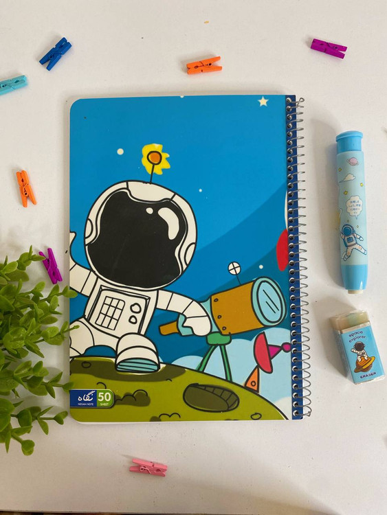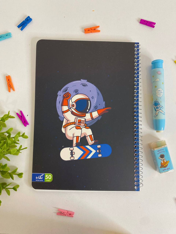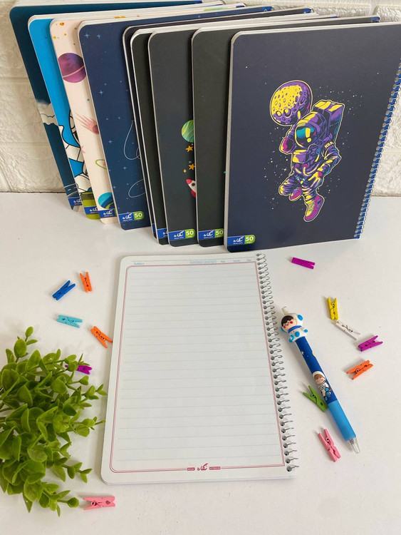 دفترهای ۵۰ برگ سری فضانورد. با ۹ طرح قشنگ😍جلد. مقوای محکم فنری از. برند عالی نگاه