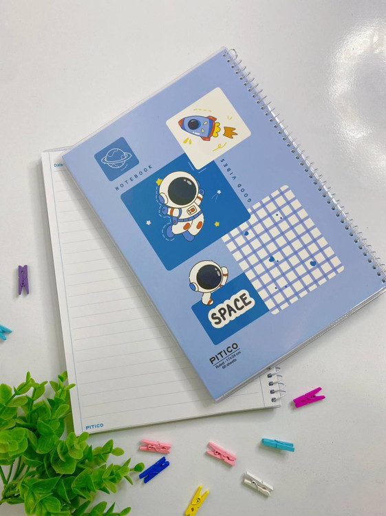 دفتر. مجلد☘️فوق العاده با کیفیت که نه پاره میشه نه کثیف میشه نه با آب خراب میشه☘️خط دار از برند خوب پیتیکو طرح فضانورد