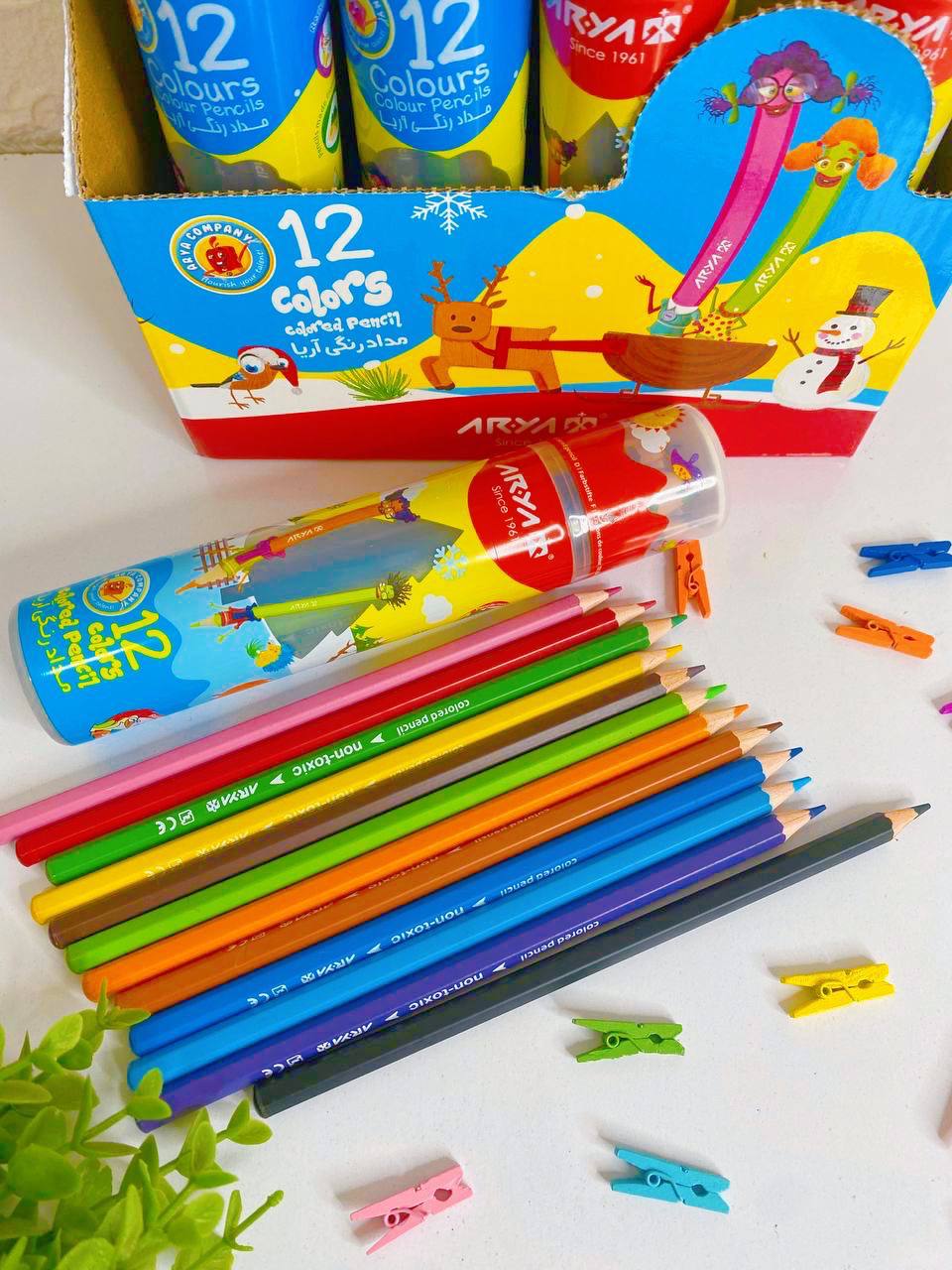 مداد رنگی ۱۲ رنگ استوانه ای آریا
